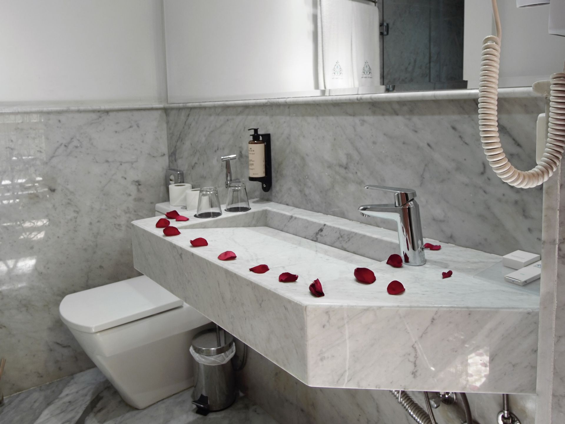 Our luxurious Ambassador Suites have an exclusive location on the first and second floors of the property. Spacious and comfortable, with an area of 50 m2, with a large 2x2 bed, they offer a bedroom and a welcoming living room in the same setting. The high ceilings' colorful frescoes, decorative plasterwork and beautiful tiled parquet floors, all dating from the 19th century, have been restored.